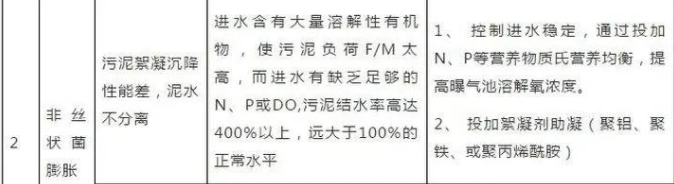 (2)通过调整工艺运行措施控制污泥膨胀的方法