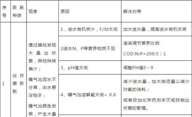 解决办法:增加负荷均衡营养,提高水温,改善污泥生长环境。